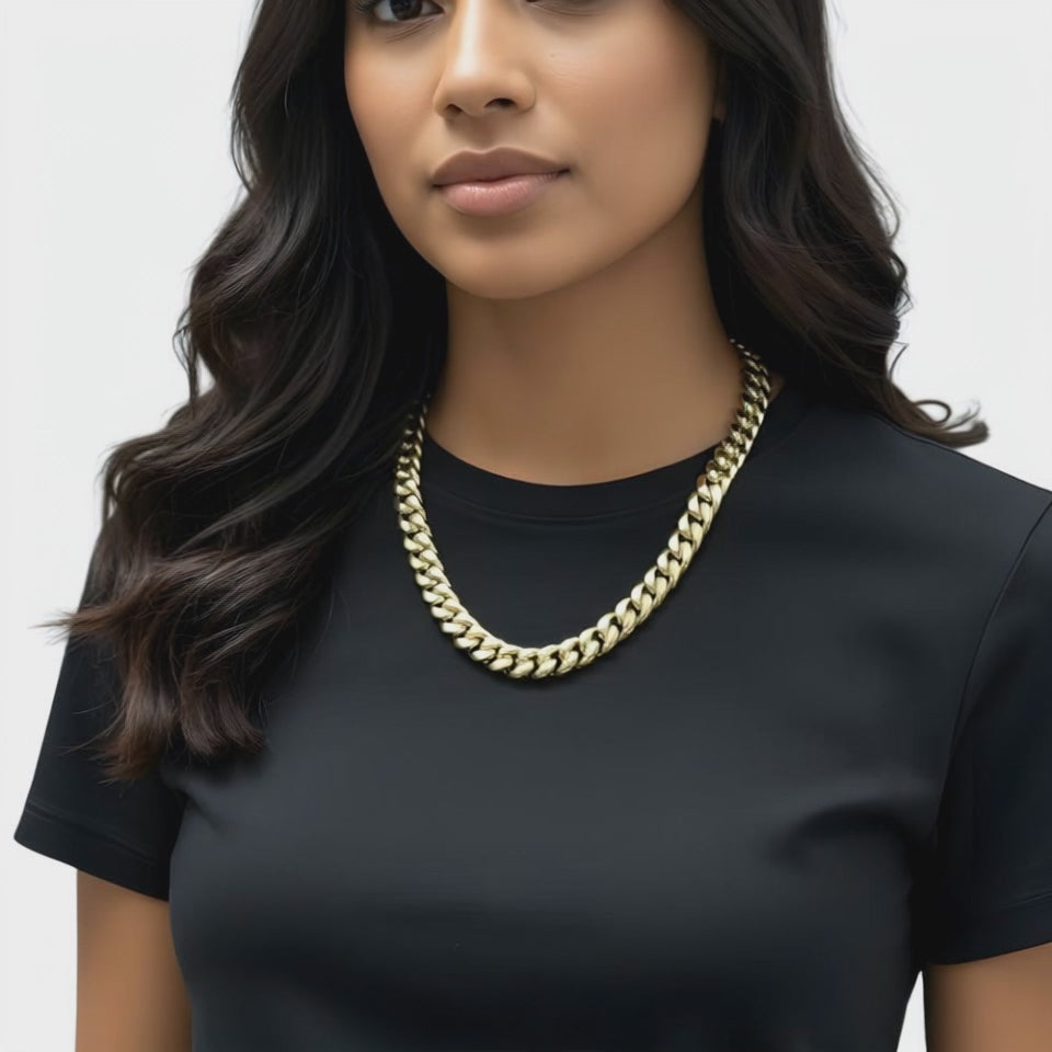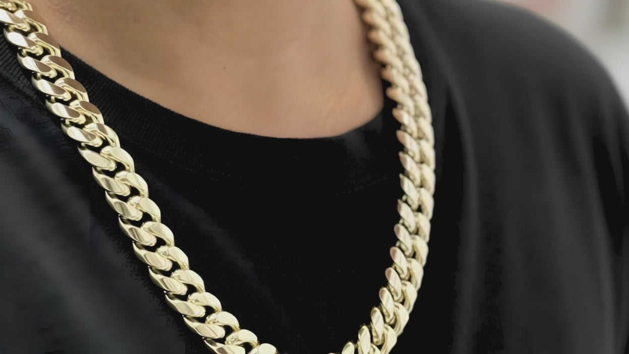 14mm Miami Cuban Link Necklace in 14K Heavy Yellow Gold Overlay Zircon Stone Clasp– Incredible Chic Men’s Jewelry