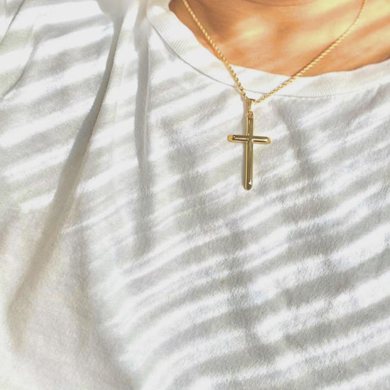 Rope Chain Cross Pendant Necklace in 24K Yellow Gold (2mm)